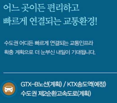 ㅇ 교통 호제 : GTX-B노선(계획), KTX송도역(예정), 소두권 제2순환고속도로(계획)