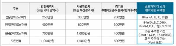 공 통 | ㅇ 인천광역시 거주하거나 수도권(서울시,경기도)에 거주하는 만19세이상인자 ㅇ 세대주, 세대주인 미성년자(자녀양육,형제자매부양) ㅇ 청약통장에 가입하여 2년이 지난자로서 예치기준금액 이상 납인한자 |