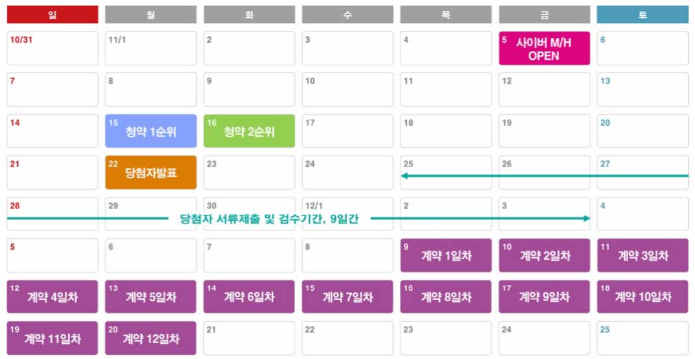 - 11.15일 1순위 청약, 11.16일 2순위 청약(특별공급 없음)