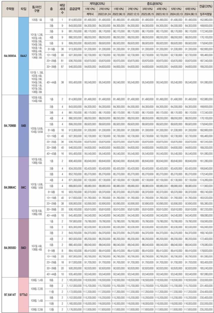 ㅇ 84 타입 : 분양가 약 8.15억~9.55억 ㅇ 97T 타입 : 분양가 약 11.52억~11.76억