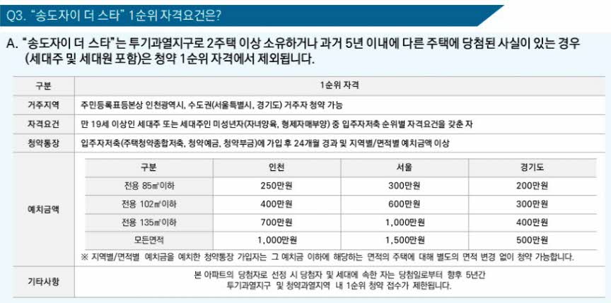 송도자이더스타 청약자격 및 요건(입주자 모집공고일기준)