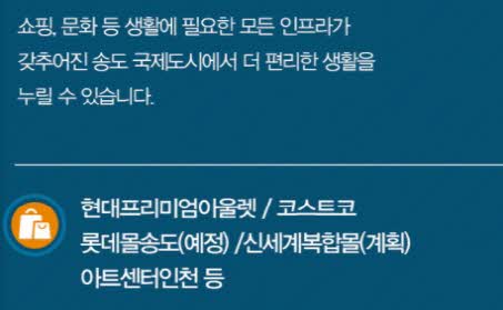 ㅇ 인프라 : 현대 프리미엄 아웃렛, 코스트코, 롯데몰 송도(예정), 신세계 복합몰(계획), 아트센터 인천