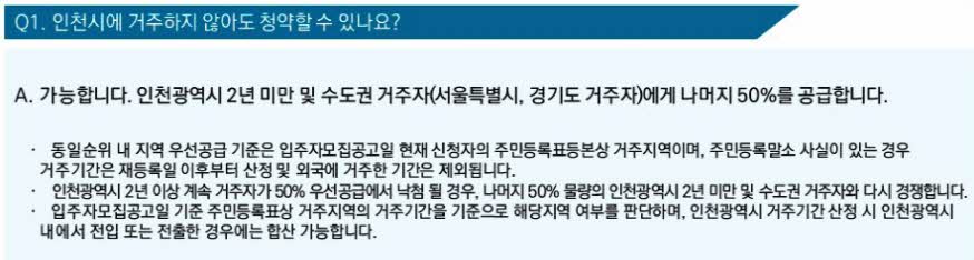 [해당지역] 인천광역시 2년이상 거주자 50% [기타지역] 인천광역시 2년미만, 서울특별시 경기도 거주자 50% |