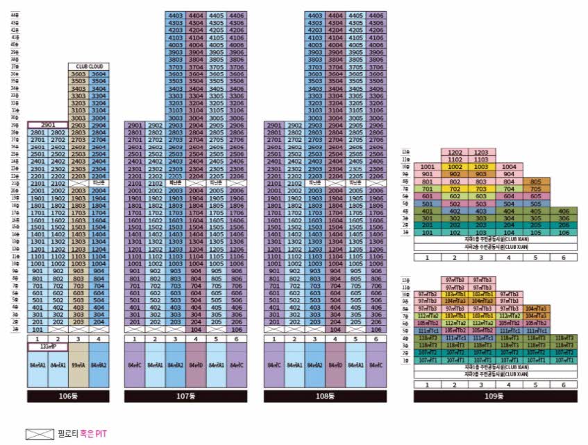 ㅇ 모든 타입 남동, 남서 위주로 조망권에 신경 쓴 배치도